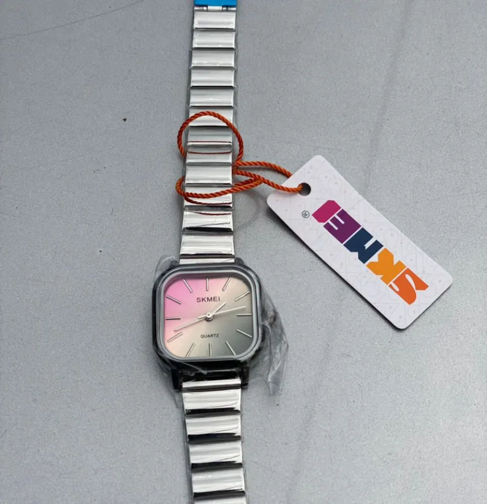 Skmei Montre Quartz Skmei Pour Femmes Avec Cadran Coloré Et Bracelet En Acier Inoxydable, Étanche À 30 Mètres, Montre : Femme Cadran: Carré Bracelet: Acier Inoxydable