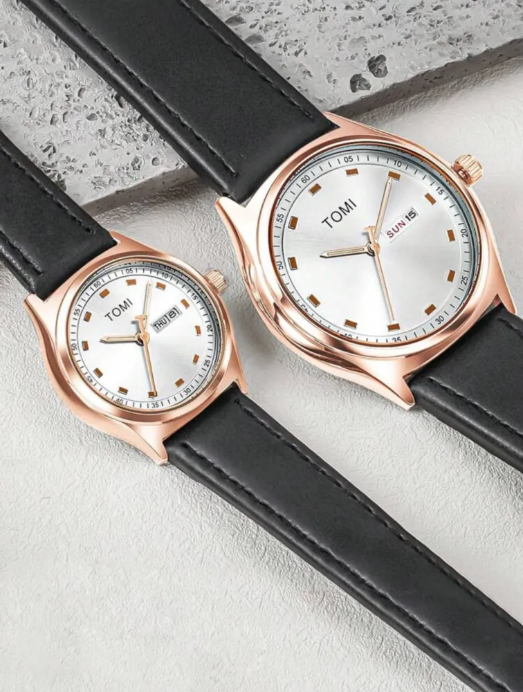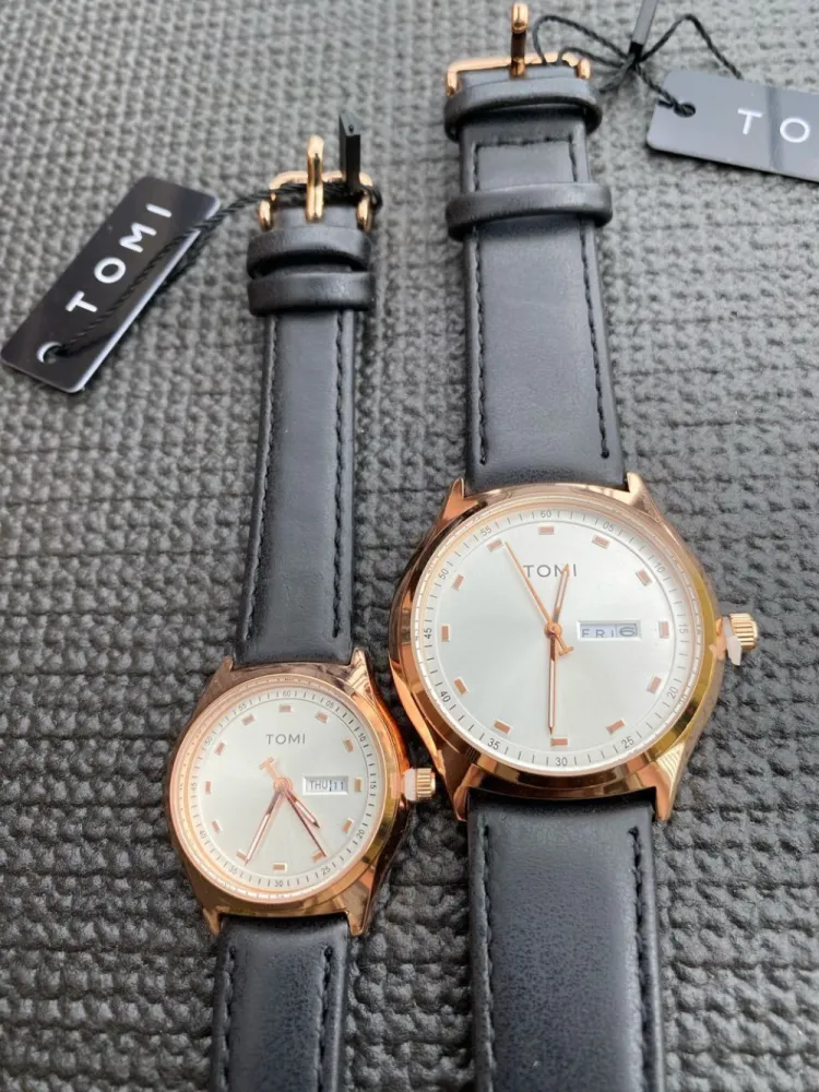 La montre TOMI Couple allie élégance et simplicité avec un design épuré, un boîtier en acier et un bracelet ajustable. Idéale pour les couples, elle symbolise harmonie et style. Montre: Couple Cadran: Or Bracelet: Polyréthane , Noir